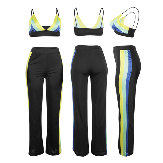 Rainbow Striped Wrap Chest Wide Legs Two Piece Set