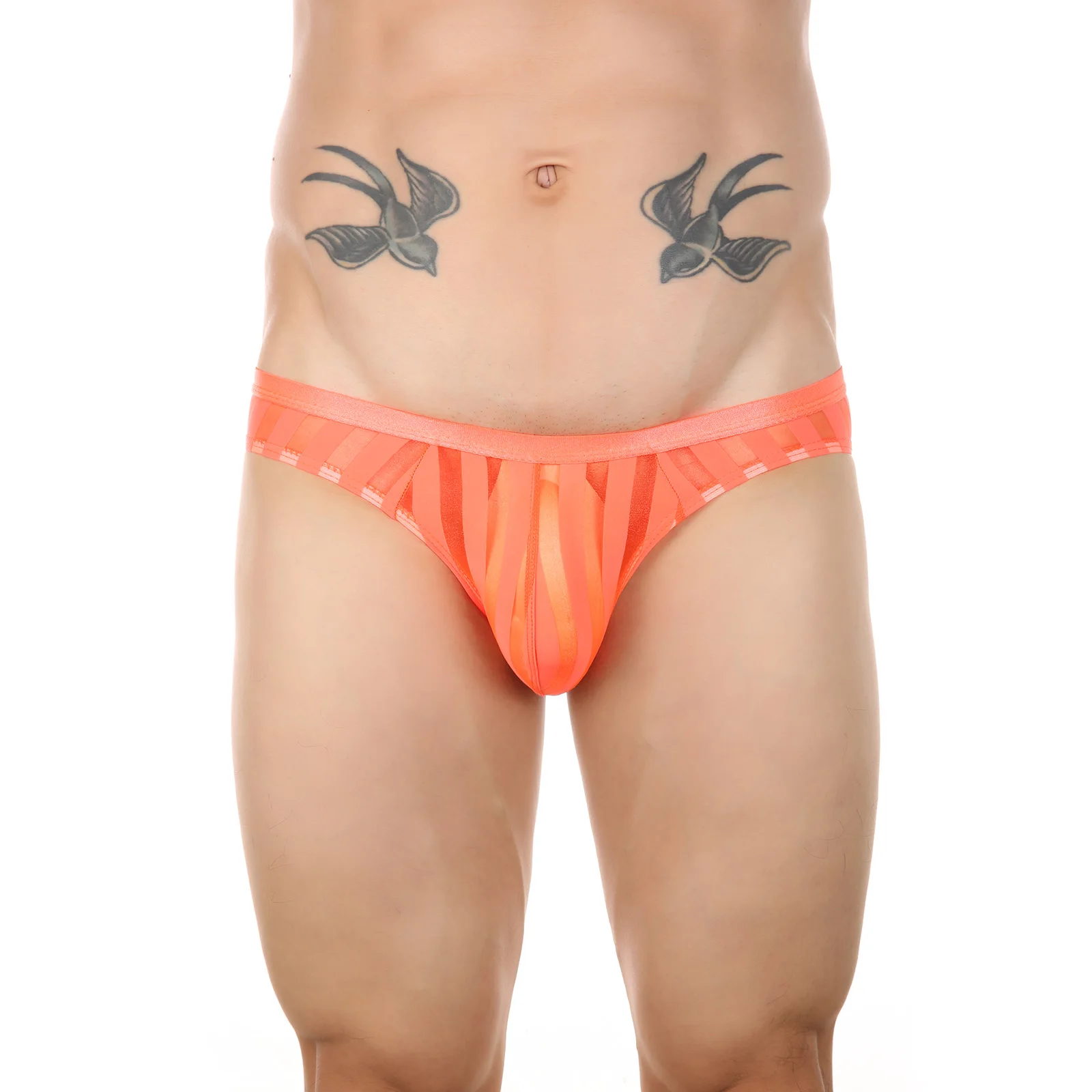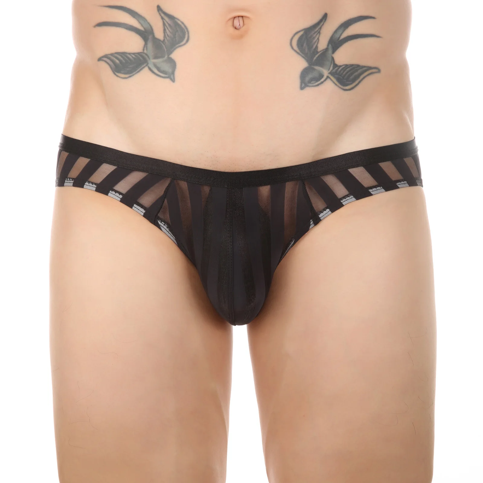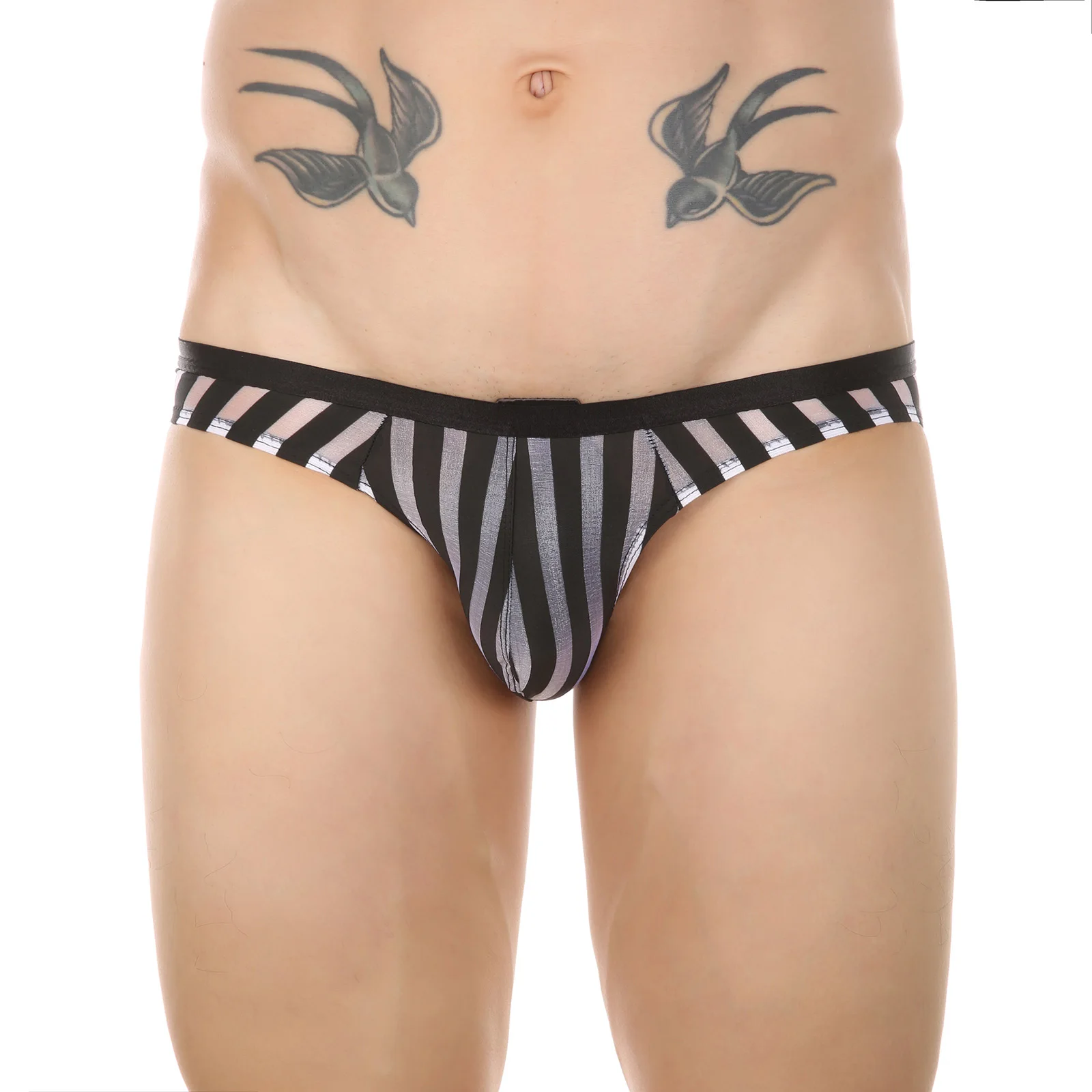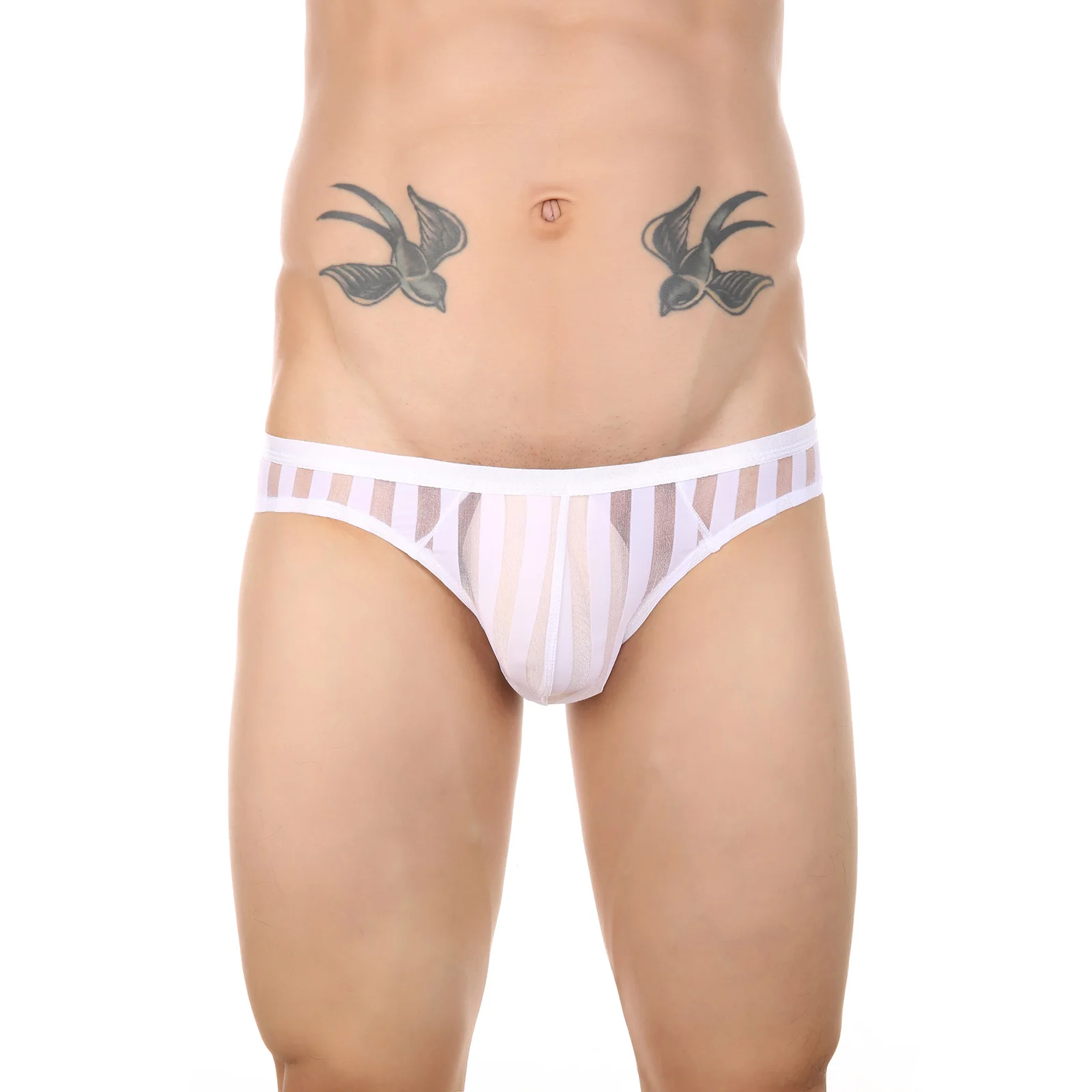 CLEVER-MENMODE Men's Sexy Striped Briefs Transparent Breathable Mesh Bikini U Convex Bulge Pouch Underwear